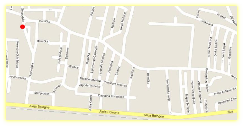 od Črnomerca, u smjeru zapada, Ilicom do kraja, a zatim ulicom Aleja Bologne, do prvog semafora gdje se skrene desno. Nakon otprilike 400 m s lijeve strane, neposredno prije prodavaonice Konzum i raskrižja s Bolničkom ulicom, nalazi se odvjetnički ured. Na karti je pozicija ureda označena crvenim krugom!